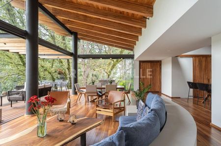 Magnifica propiedad dentro del condominio Avándaro 333, ubicada en el corazón de Avándaro, muy cerca de la zona comercial y del Club de Golf. Está propiedad es ideal para el descanso, cuenta con amplios espacios sociales, terraza con jacuzzi, combinas materiales que dan como resultado una casa de descanso cálida y moderna.