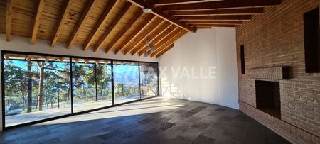 "¡¡Casa nueva, lista para estrena¡¡ubicada dentro de un exclusivo fraccionamiento a escasos 5 minutos de la zona comercial de Avándaro, el diseño es parecido a una pequeña hacienda, 4 de las recámaras dan a un patio con un encanto muy mexicano , la principal goza de una vista muy agradable , así como salida a otra parte de jardín totalmente plano, en la planta alta se ubica una gran estancia-comedor con vista al lago y bosque, terraza con asador, cocina muy amplia, área de t.v., la quinta recámara se ubica en ésta misma área con suficiente espacio para que sea muy independiente al mismo tiempo. Estacionamiento descubierto, bodega, lavandería , cuarto de servicio, vigilancia las 24hrs. Nota: se renta sin mobiliario, la cuota de mantenimiento es de $4,500.00 m.n. ( cuatro mil quinientos pesos 00/100m.n. ) se paga por separado , es independiente al pago de la renta. "
