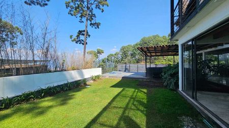 Propiedad ubicada en zona residencial y céntrica a la vez, construida en dos niveles, 4 recámaras cada una con baño completo y closet, estancia, comedor, cocina abierta con alacena, área de lavado, cuarto de servicio, dos terrazas techadas con vista al lago, una de ellas con jacuzzi, jardín plano, vigilancia las 24 hrs, acceso controlado al fraccionamiento, iluminación en todo el conjunto y circuito cerrado. Se renta sin mobiliario (solo cuenta con refrigerador y estufa), doble estacionamiento cubierto para 7 autos, cuota de mantenimiento incluida.