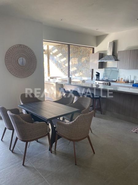 DEPARTAMENTO EN RENTA POR NOCHE (EL PRECIO ES POR NOCHE): Acogedor departamento en renta, ubicado en el centro de Valle, a escasos minutos del acceso a la autopista. Próximo de los supermercados, a pocos minutos del embarcadero y el zócalo del pueblo. Con agradables y cómodas instalaciones y amenidades, el condominio cuenta con: Alberca, jacuzzi, fire pit, gimnasio, spa, bar, área de juegos para niños, cancha de pádel, agradables jardines y senderos para caminar. El departamento se distribuye en una planta, cuenta con cocina integral totalmente equipada, amplio desayunador, sala con T.V., comedor, 3 habitaciones cada una con baño completo y amplio closet, cómodamente amuebladas, área de lavado con lavadora y secadora. Y una amplia terraza con vista al bosque y a las amenidades del condominio, con área de asador que se conecta con la cocina para facilitar las actividades. En esta misma área de terraza, encontrarás una chimenea de gas que dará un agradable ambiente a tus tardes en familia o con los amigos. No pierdas la oportunidad de pasar tu fin de semana o las vacaciones en un lugar que te ofrece una estancia inigualable. NOTA: No se aceptan mascotas.