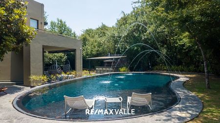 Exclusiva residencia con modernos acabados amplios espacios rodeada de jardines y senderos que llevan a las dos secciones de lagos de Valle Santana la conforman Terraza y Pergola da vida a los espacios sociales de la casa en un magnifico entorno boscoso donde descubrimos un jacuzzi cubierto y una amplia piscina la cual se ilumina por las noches,ven y conocela