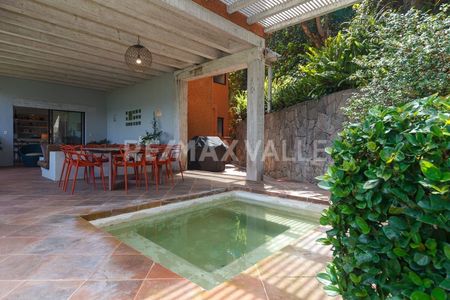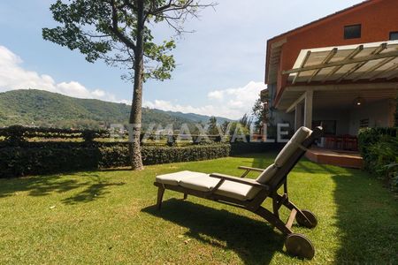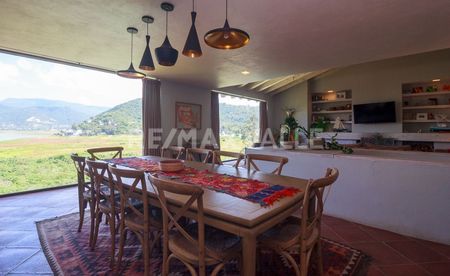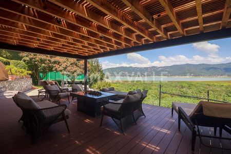 "Perfecta combinación entre lujo, comodidad y elegancia. En la primera planta se encuentran sala, comedor con acceso a una hermosa terraza con vista franca al lago. El área exterior se componen de sala y comedor armoniosamente acompañados de un “ fire pit”, jardín plano y jacuzzi. La planta alta la integran tres espaciosas recámaras con inmejorable vista al lago y a las montañas.