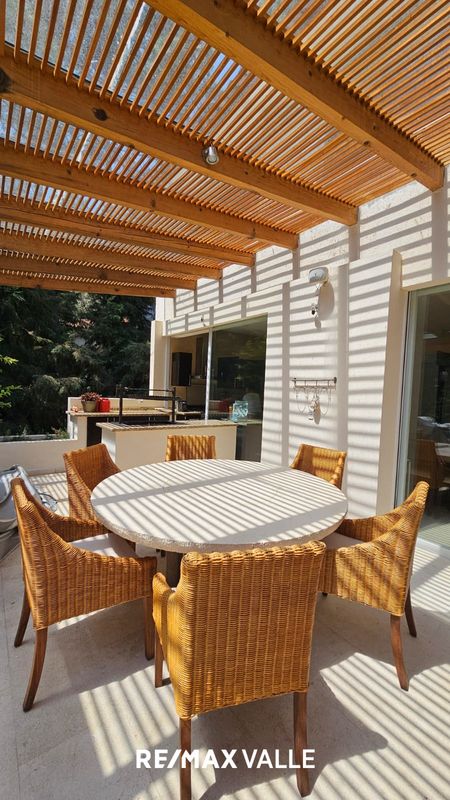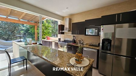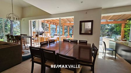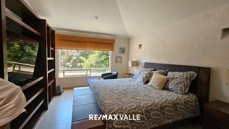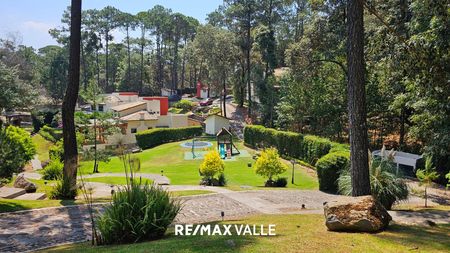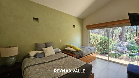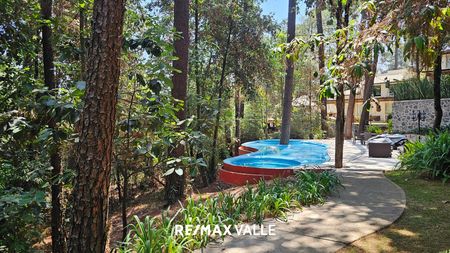 Casa ubicada en la parte alta del condominio denominado Manantiales II, con espectacular vista al bosque y montañas, dos niveles, cuatro recámaras cada una con baño completo, terraza techada con asador y jacuzzi, jardín plano, garaje descubierto para 3 autos, bodega, vigilancia con acceso controlado, áreas comunes: cancha de tenis, 4 jacuzzis, gym, juegos para niños con jardín plano. Se vende sin mobiliario
