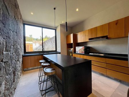 Distribuida en dos niveles, la casa cuenta con 4 recámaras, 4 baños completos, cocina totalmente equipada, área de lavandería, cuarto de servicio, bodega y estacionamiento para 2 autos. Además, disfrutarás de tu propio jardín privado, perfecto para convivir en familia o con amigos.