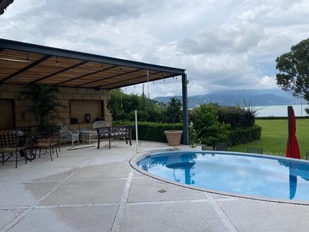 Propiedad en renta con acceso, lancha y vista al lago. Es muy amplia, de patios interiores, jardines y vistas muy lindas, en uno de los mejores climas que tiene Valle, sin duda una gran propiedad para disfrutar con la familia y amigos, todo en una sola planta. Muy cómodo.