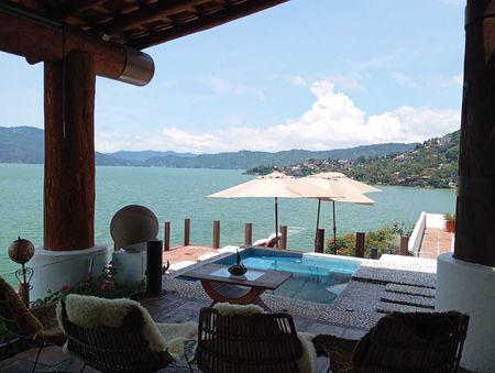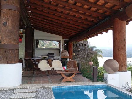 Ven y disfruta de la temporada navideña con tu familia en esta casa que cuenta con 5 amplias habitaciones con baño, vista completa al lago desde todas las áreas de la casa, sala interna y externa, varias terrazas, asador, comedor, estacionamiento para cuatro autos, alberca, jacuzzi, jardín, acceso directo al lago con muelle propio, capacidad para + 10 personas, la casa también **se renta por mes o año compartido**