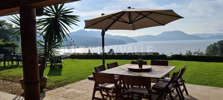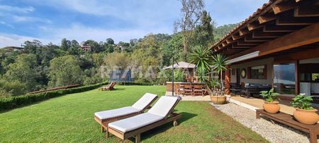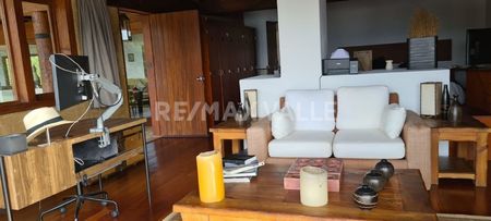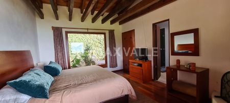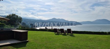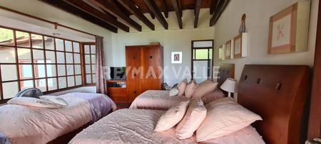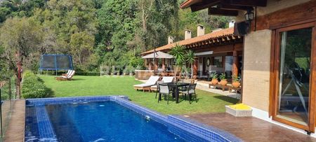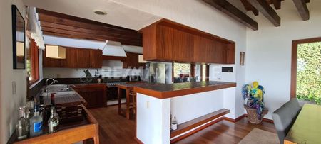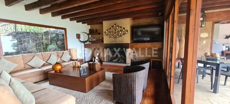 Casa con vista franca al lago, jardín plano, casa en un solo nivel de 4 recámaras, cada una con baño completo, closet y chimenea, baño de visitas, terraza, la principal con estudio y salida directa a deck/ terraza. área de asador descubierta, alberca -jacuzzi con calefacción, gran bodega, cuarto de servicio más casita para el personal que atiende la casa, colindancia con peñasco con entorno boscoso con riachuelo.