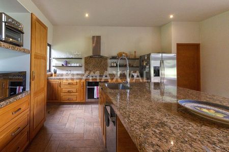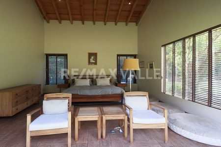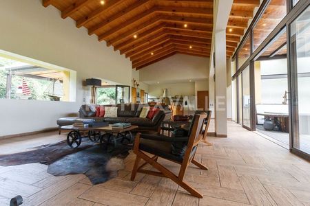 Residencia con arquitectura moderna contemporánea, completamente equipada, amplio jardín, jacuzzi, se vende amueblada. Ubicada en exclusivo Fraccionamiento "Valle Santana " en Valle de Bravo. El fraccionamiento se conforma por 46 hectáreas ,3.5 km de calles empedradas, casa club, alberca con calefacción solar, juegos para niños, 8 hectáreas de áreas comunes, seguridad las 24 horas, tres lagos con cascadas, canchas tenis, cancha de paddle, cancha multideportes, gimnasio, fibra óptica y telefonía. Excelente oportunidad de inversión.