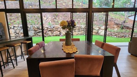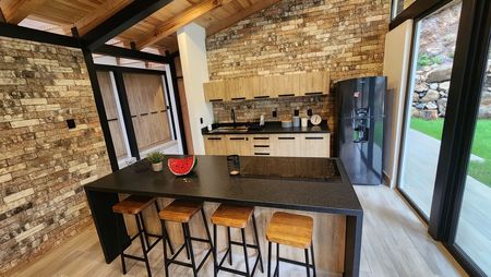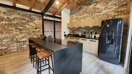 Desde el momento en que cruza su acceso principal, será recibido por espacios que invitan a la relajación y al disfrute. La Sala-Comedor se fusiona armoniosamente con una Cocina Equipada de Vanguardia, donde cada elemento ha sido cuidadosamente seleccionado: desde la elegante tarja de acero inoxidable y la moderna parrilla de inducción con encendido eléctrico, hasta el horno mixto (gas y eléctrico) de 60 cm, todo coronado por cubiertas de granito negro que inspiran la creación culinaria. La imponente Chimenea de Leña, revestida con fachaleta de barro artesanal Vintage, añade un toque de calidez y distinción, perfecta para noches inolvidables.
