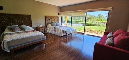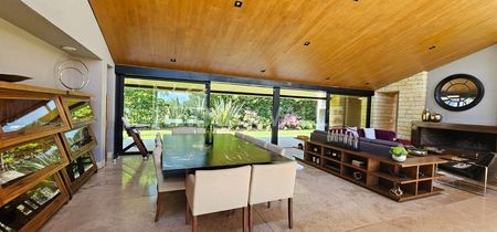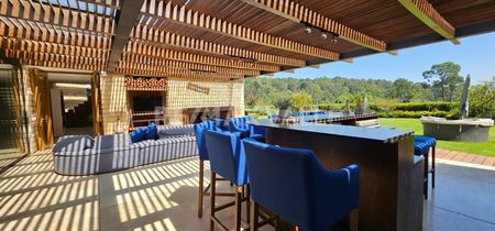 Condominio de 8 casas, ubicado en calle cerrada dentro de club de golf, un nivel, 4 recámaras cada una con baño completo, la principal con vestidor, 3 de ellas con salida directa al jardín, área de bar, terraza exterior, jardín plano, extraordinaria vista, jacuzzi tipo alberca techado, área de fire pite, bar, baño de visitas, independiente a la casa cuenta con una gran bodega para motos. cocina equipada, alacena, área de lavada, cuarto de servicio con baño completo, estacionamiento descubierto para varios autos. el condominio cuenta con alberca y jardín común, caseta de vigilancia y portón eléctrico. en el precio va incluido el mobiliario.