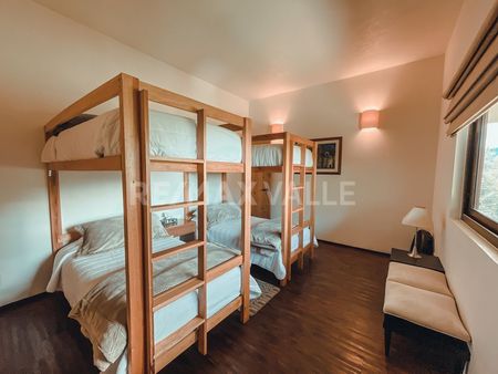 La casa cuenta con vista panoramica al lago y amplios espacios que giran en torno a un patio central de piedra, creando un ambiente acogedor y lleno de luz natural. Las habitaciones son prácticas y luminosas, diseñadas para maximizar la comodidad. Además, un jacuzzi, cuarto de juegos, bodega, cuarto de servicio y un estacionamiento cubierto.