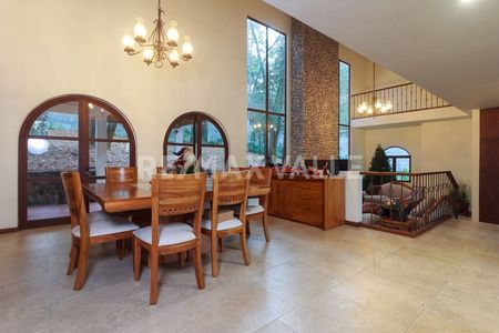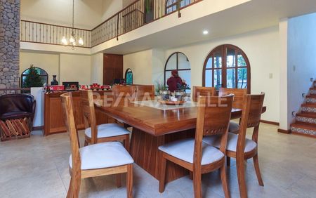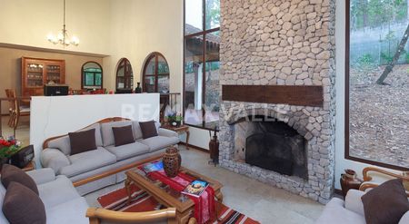 Casa ubicada en club de golf, vega del sauce, 3 recámaras con baño, closet, chimenea, tapanco y terraza, salón de juegos, terraza techada, área de lavado y patio de servicio, techos de doble altura, entorno boscoso, estacionamiento descubierto para varios autos. Área de jardín libre aproximadamente 1383m2
