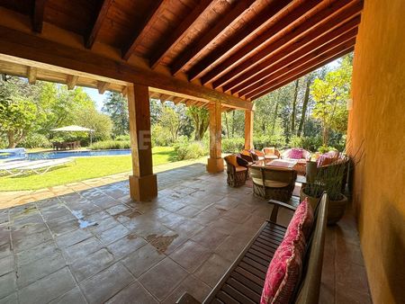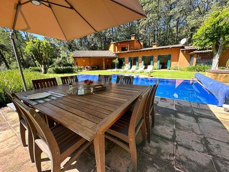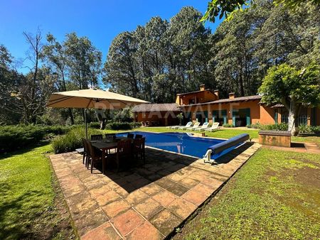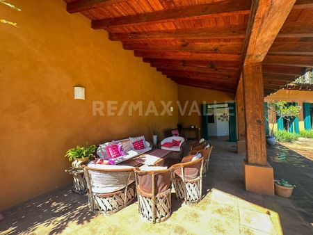 RFV550451 Venta de rancho en Cerro Colorado con una superficie total de 18,764 m2, de los cuales, 10,511.73 m2 son privativos y la diferencia es 1/5 parte del área común que comparten 4 propietarios más y que en total es de 41,262.15 m2. En la superficie privativa cuenta con un estacionamiento techado, casa de cuidadores, casa de 350 m2 de construcción en dos niveles, con área social integrada a terraza techada exterior, 4 recámaras con baño cada una. Alberca, jardines y área de huerto. El área común incluye vialidades, caballerizas, potrero y senderos.