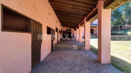 En venta propiedad en Acatitlán, muy cerca de la Escuela Caracoles, de 4,045.95 m2 conceptualizada actualmente para utilizarse como un hípico pequeño, ya que tiene construidas 7 caballerizas, un sillero, un salón recepción con baño y cuarto de caballerango.